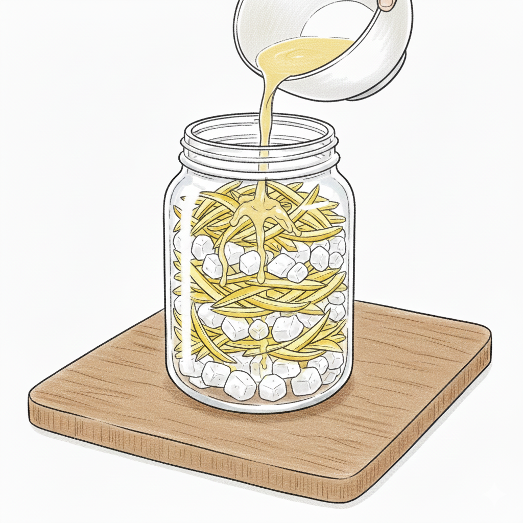 ⑤ 氷砂糖と果皮を交互に瓶へ入れる